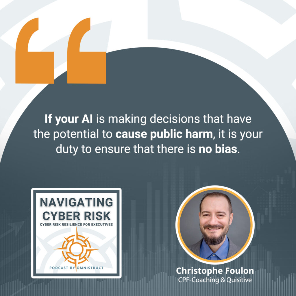 The other thing when it comes to that is if your AI is making decisions that have the potential to cause public harm, it is your duty to ensure that there is no bias in the AI, or you’re aware of any bias in the AI. It is so that you can remove that bias in the decision-making, either before it makes a decision or after it makes the decision, and you change the output in your final product.